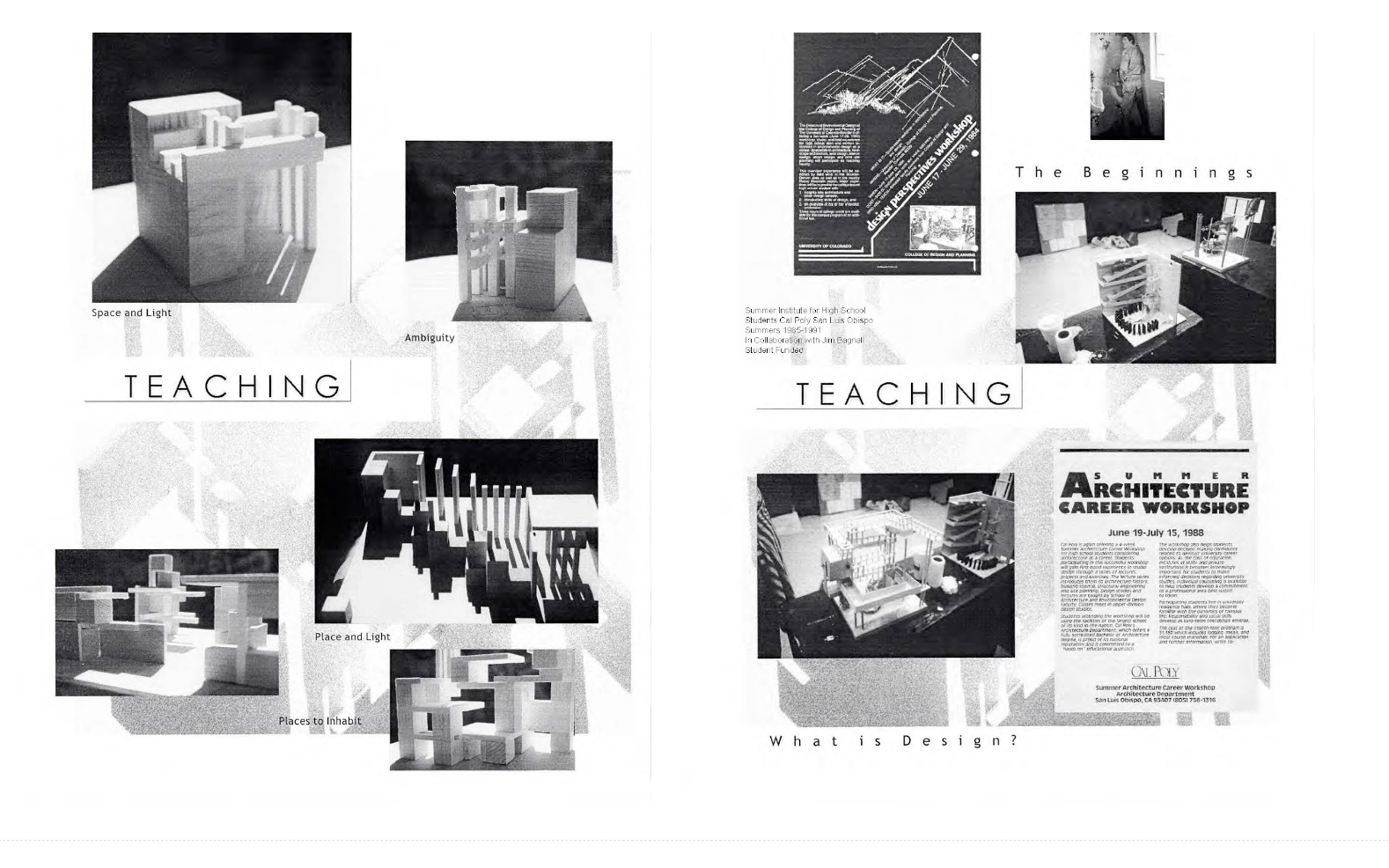 • 1985-1992– Department of Architecture, School of Architecture and Environmental Design, California Polytechnic State University, San Luis Obispo, CA. Responsible for teaching architectural design studio, design theory and methods seminar, and creative problem solving seminar.