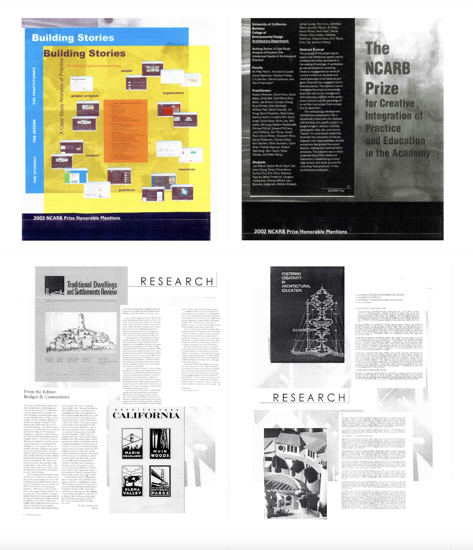 NCARB Prize Spring 2002 Honorable Mention for “Building Stories: A Case Study Analysis of Practice. April 2002