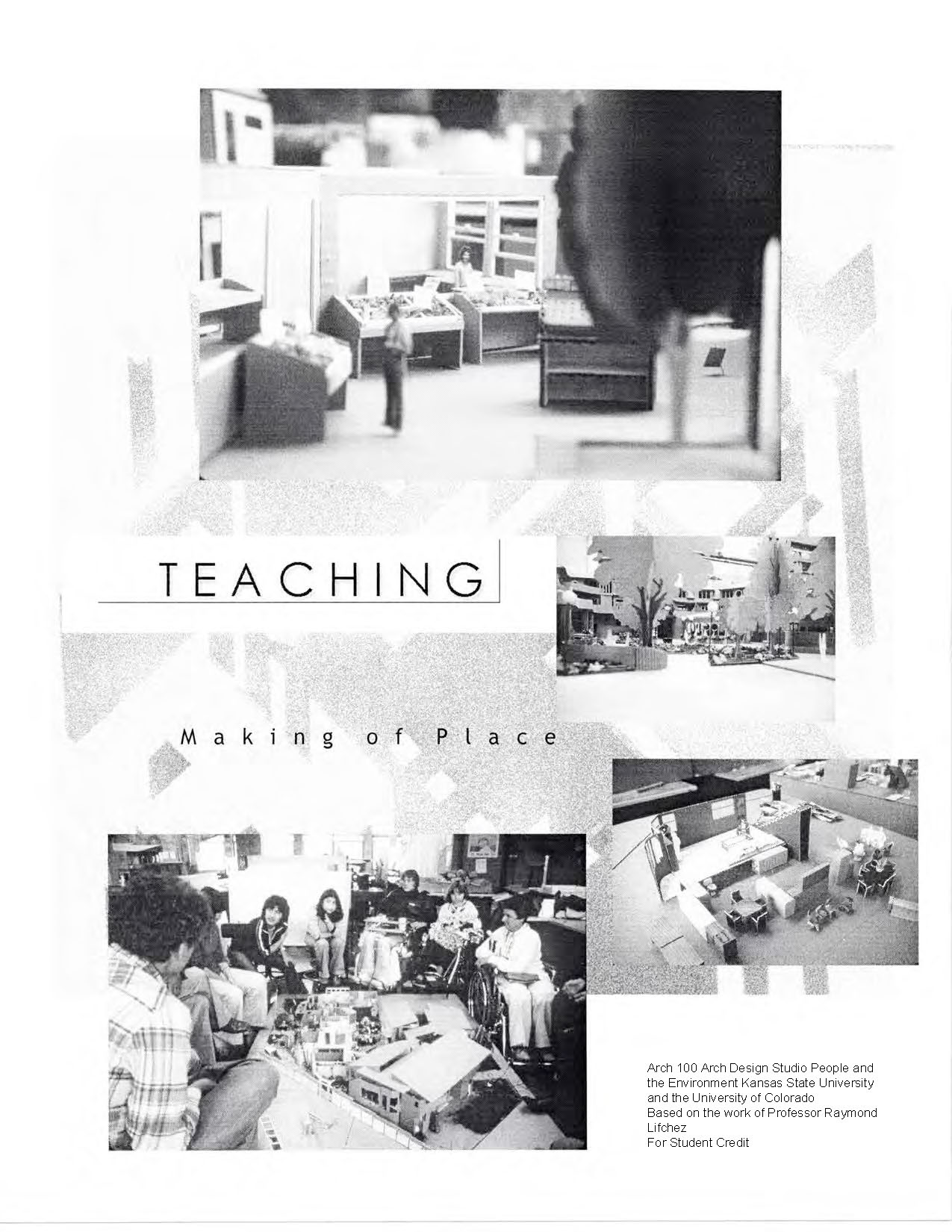 • 1978-1980–Department of Architecture, College of Architecture and Design, Kansas State University, Manhattan, KS. Responsible for teaching beginning design studios and fourth year architectural design and coordination of the architectural internship program. (on leave 1976-1978)