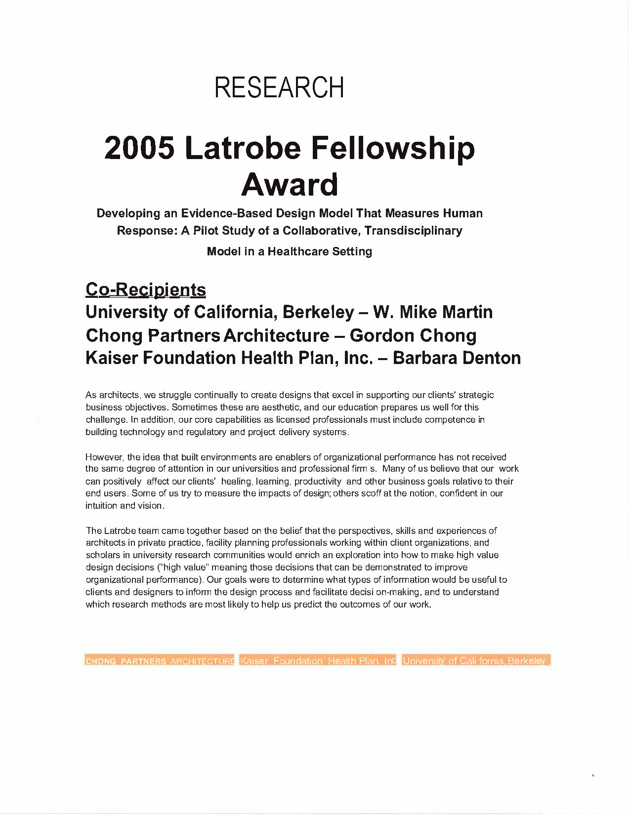Latrobe Fellow of the College of Fellows of AIA 2005